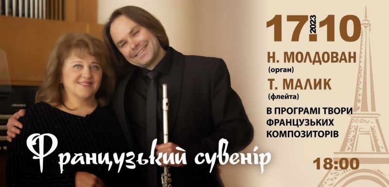 Поринути в атмосферу французького шарму та елегантності, які завжди були невід'ємною частиною цієї музичної традиції, вас запрошують наші талановиті артисти: органістка, заслужена артистка України, Наталія Молдован та флейтист, лауреат міжнародних конкурсів, Тарас Малик. Наші постійні гості вже добре знайомі з цим творчим дуетом та завжди із задоволенням приходять до концертної зали, аби відчути ту особливу ауру, що народжується у нашій залі під час їхніх концертів.