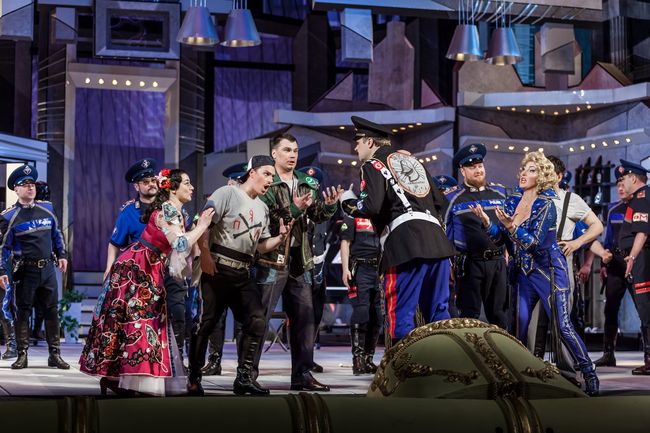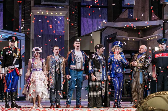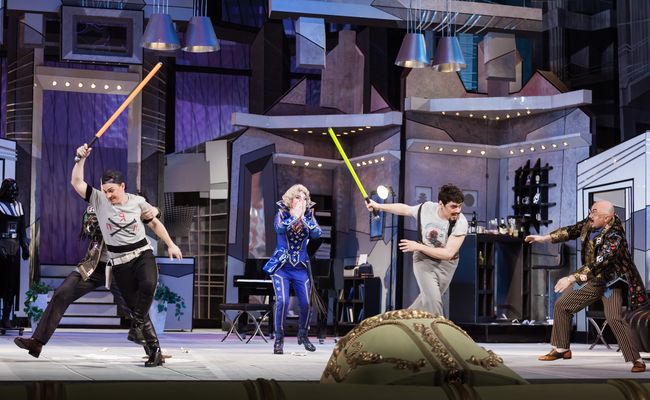 Прем’єра відомої комічної опери Джоакінно Россіні викликала ажіотаж серед меломанів. Цього разу Анатолій Солов’яненко відійшов від традиційного класичного підходу, яким славиться у своїх постановках, і з гумором трохи похуліганив та розвеселив публіку. Його «Севільський цирульник» — це дійство поза часом. У декораціях Андрія Злобіна події опери з вулиць Севільї перенесли у... торговельний центр, який розташований у якомусь містечку Європи, а у другому відділі ми вже бачимо авангардне помешкання лікаря — біля дверей скульптура... Дарта Вейдера із «Зоряних війн», концертний рояль, барна стойка, бібліотека, телевізор-плазма, стіл з офісним стільцем, велике шкіряне крісло... У дивних, навіть аляпуватих костюмах (джинси, аплікації, високі кашкети, халати... креоліни), які придумала художник Ганна Іпатьєва, з’являються герої. Наприклад, Фігаро віртуозно... катається на самокаті і майстерно співає. Граф Альмавіва дає інтерв’ю перед камерами, робить селфі з журналістами після своєї серенади під акомпанемент... електрогітари під балконом Розіни. А чого вартий потішний бій героя на світлових «мечах» з лікарем Бартоло за серце красуні Розіни!