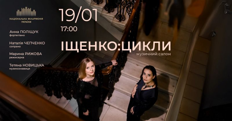 19 січня – Наталія Чепченко, сопрано та Анна Поліщук, фортепіано запрошують на програму з вокальних та фортепіанних циклів сучасного українського композитора Юрія Іщенко. Його музика віддзеркалює провідні стильові течії і композиторські техніки своєї доби. При цьому в ній завжди чутно індивідуальний голос митця, де крихкість, делікатність інтонації озвучується з граничною експресією тембру. Так, у циклі «Календарні пісні» архаїчні тексти й поспівки набувають нових сенсів у складних модерністських гармоніях. Інтелектуальна лірика Євгена Плужника втілюється у циклі «Рання осінь» через поєднання рафінованої раціональності додекафонії та глибинного драматизму висловлювання. А 24 прелюдії для фортепіано, що усі «виросли» з однієї теми-серії, подібно до калейдоскопу, розкривають різні грані камерного універсуму композитора.