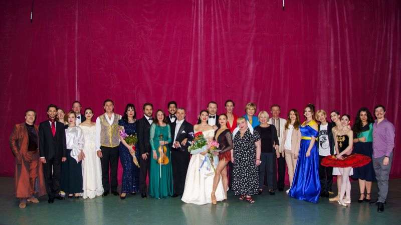 Свою окрилену українську любов цього вечора глядачам дарували солісти опери - заслужений артист України Дмитро Павлюк, лауреати міжнародних конкурсів Віталій Білий, Ілона Скрипник, Марина Наймитенко, Василь Добровольський, Таїсія Шафранська, Олександр Прокопович, Олександр Стрюк, Леонід Шошин; солісти балету - заслужені артисти України Сергій Доценко, Катерина Кальченко; лауреати міжнародних конкурсів Наталія Івасенко, Андрій Писарєв, Станіслав Скринник, Ольг Анісімова (скрипка); артисти балету театру (балетмейстерка – Яніна Кісельова).