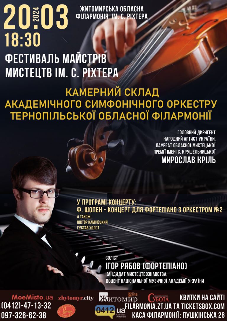На честь народження великого піаніста Святослава Ріхтера, в Житомирській обласній філармонії відбувається Фестиваль майстрів мистецтв - незабутня подія, що розпочнеться 20 березня.