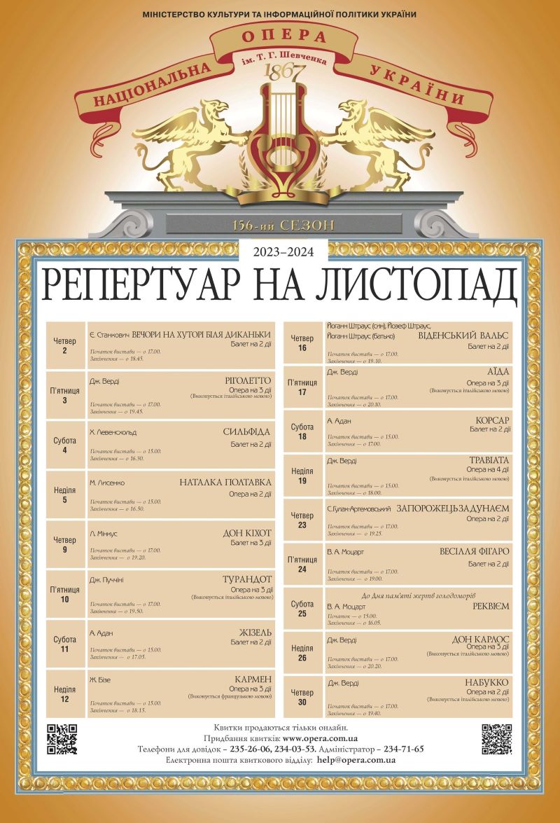 До уваги публіки будуть представлені кращі зразки світової і української оперної та балетної класики, а також сучасні постановки.