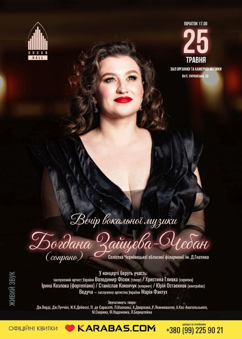у Чернівецькій філармонії ім. Д. Гнатюка відбудеться вечір вокальної музики