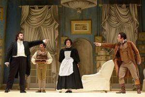 Через це недостатньо рельєфно була підкреслена спільність легковажної натури Дона Парменьоне й Ернестіни, в партії якої виступила меццо-сопрано Вікторія Ярова. У самому творі передбачався виразний контраст характерної і ліричної пар. Але у виставі остання виглядала значно переконливіше. Береніче Олени Цалагової, яка знає собі ціну і вміє вести інтригу, безпомилково вичислила самозванця і визначила дійсного обранця в особі благородного графа Альберто, ліричну мрійливу натуру якого добре змалював Еней Скала.