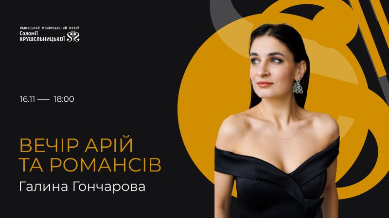 Неділя, 16:11 \ 18:00 - Вечір арій та романсів. Галина Гончарова Камерний вечір вокальної музики за участі вокалістки Галини Гончарової (сопрано) у супроводі піаністки Олександри Менцінської.