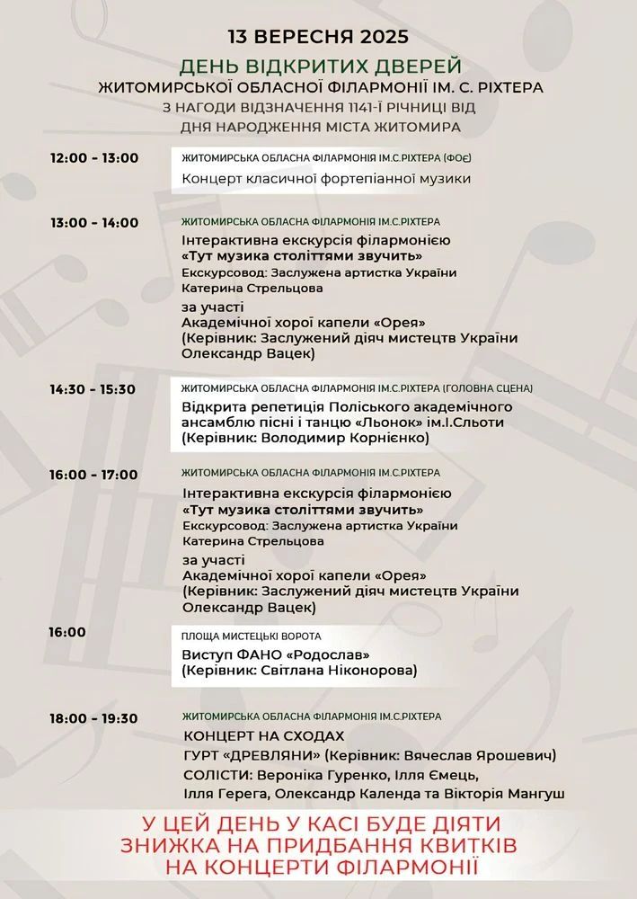 13 вересня Житомирська обласна філармонія ім. С. Ріхтера відчиняє свої двері для всіх, хто любить музику та цінує мистецтво!