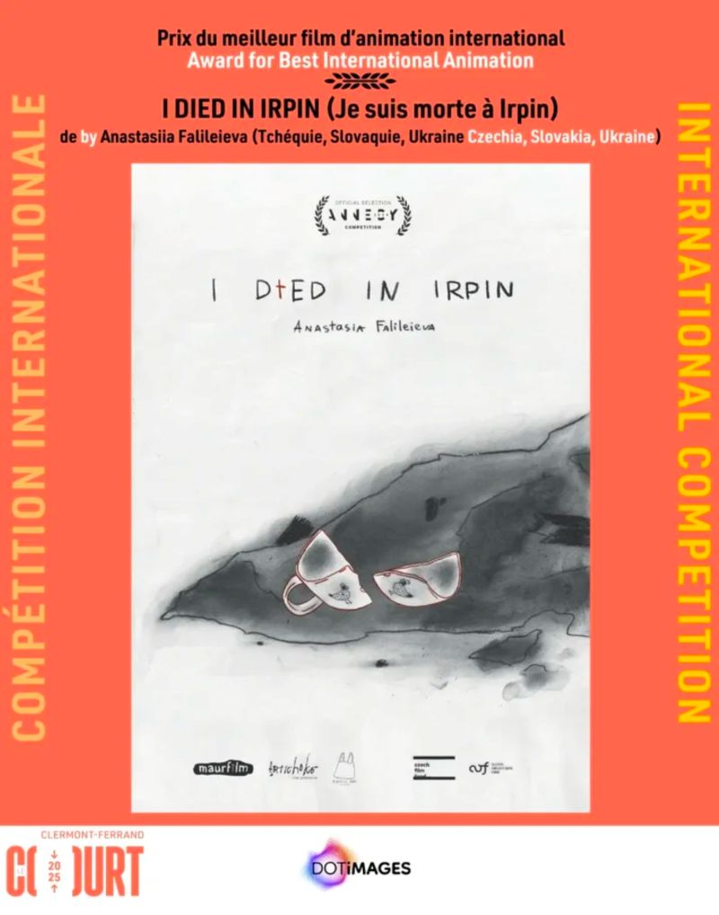 Фільм «Я померла в Ірпені» є документальною анімацією. Він вже брав участь у найпрестижнішому анімаційному фестивалі в Ансі, Франція (Annecy International Animation Film Festival), а також минулого року фільм було кваліфіковано на Оскар-2026 після перемоги на Корейському фестивалі Bucheon International Animation Festival.