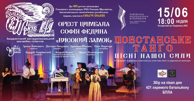 15 червня у Львівському колонному залі ім. С. Людкевича відбудеться концерт та презентація книжки Ореста Цимбали - «Повстанське танґо Ольги Ільків»