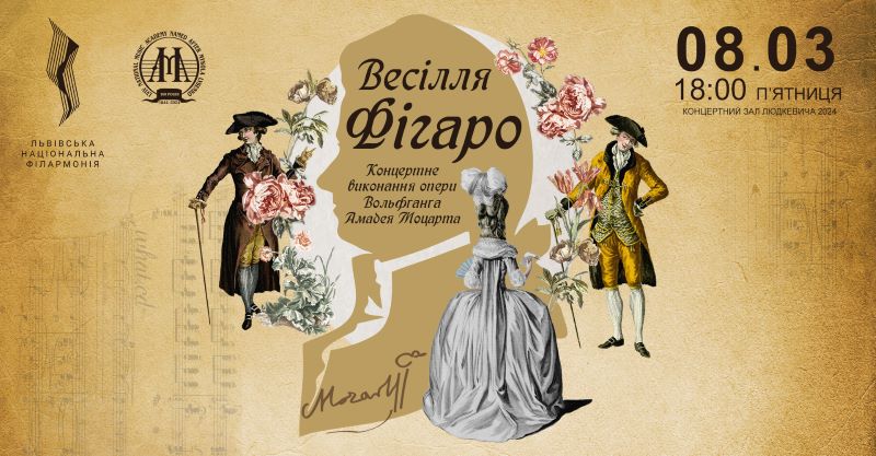 До 180-річчя Львівської національної музичної академії імені Миколи Лисенка запрошуємо відвідати постановку видатної комічної опери Моцарта (1786). “Весілля Фігаро” — знакова опера для будь-якої сцени. Цього разу у філармонії ми відтворимо сюжет Бомарше у майстерному виконанні солістів та симфонічного оркестру.