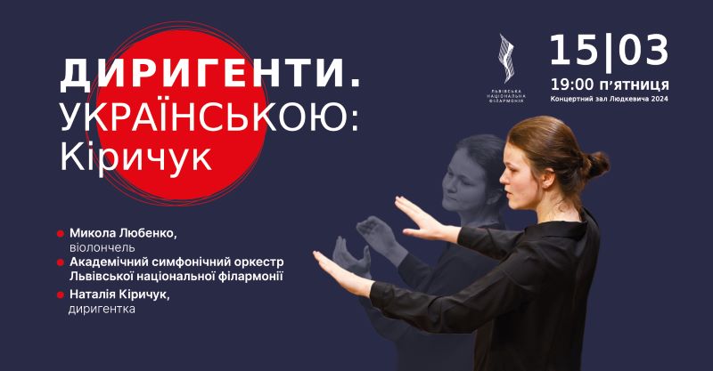 Диригенти. Українською — вже знаний проєкт Львівської національної філармонії, заснований у 2020 році. У березневій події «Диригентів. Українською» Академічний симфонічний оркестр філармонії виступить під орудою Наталії Кіричук — диригентки з Києва. Під час майстеркласів, які Теодор Кухар та оркестр проводили спільно зі Студентським науково-творчим товариством «Octopus» Національної музичної академії України, рішенням оркестрантів було запрошено до цієї співпраці. Спільно з оркестром Кіричук виконає твори Бетховена та Дворжака, симфонічні полотна неймовірної краси та складності, що підкоряються не кожному диригенту сучасності.