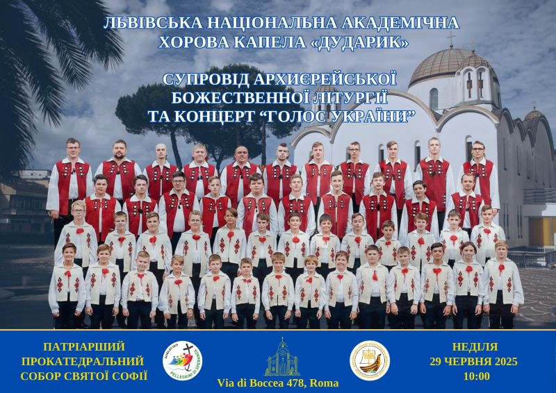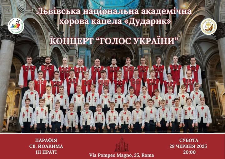 У той самий день у римському храмі святого Варнави капела дасть перший сольний концерт у межах міжнародного музичного проєкту «Stand with Ukraine». У рамках проєкту заплановано ще два благодійні виступи — 29 червня у храмі Святої Софії в Римі, а 1 липня — у місті Брешія.