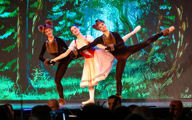 Атмосферу справжньої казки довершували лісові мешканці — птахи та звірі, яких втілювали артисти балету та допоміжного складу Харків Опера. А оркестр театру під орудою Юрія Дяченка зробив виставу ще більш яскравою та чарівною.